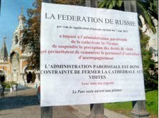 La fermeture du grand portail rappelle une autre séquence dramatique. En février 2006. Quant tout a commencé. Le père Jean Gueit, recteur de la cathédrale, ferme alors les lieux au nez et à la barbe de l’huissier mandaté par le tribunal de grande instance, à la demande de la Russie, pour faire l’inventaire des biens. Quelques mois plus tard, l’Etat russe revendique la propriété de l’église, en faisant valoir l’expiration prochaine du bail emphytéotique de 99 ans consenti à l’ACOR. Ce bail est arrivé à son terme en 2008.